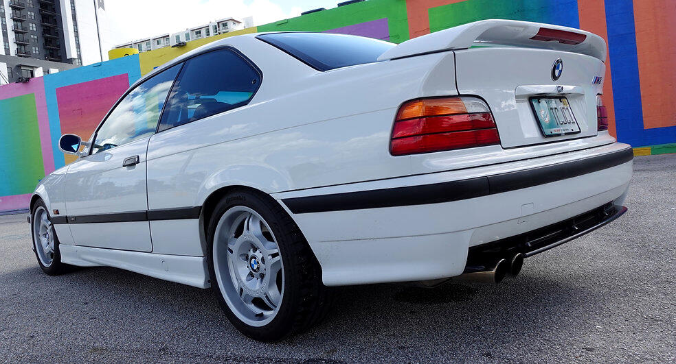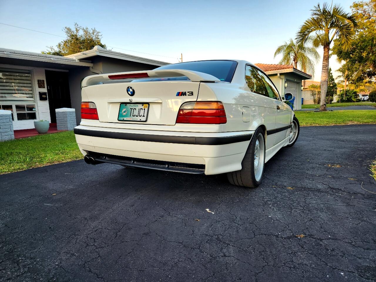 The E-36 BMW M3 has gained the reputation as being one of the most fun coupes to drive that has ever been produced. And one minute behind the wheel will prove this correct. It is what many call the ultimate analog BMW M. The ergonomics make you literally one with the car. The Steering Wheel, Shifter position, Pedal Position and Sport Seats are 2nd to none. Turn the key and the 3.0 liter 4-valve straight 6 cylinder engine begs to rev. The gearbox shifts precisely and the brakes are fantastic. This all adds up to a fantastically well balanced and comfortable driving machine.This example comes to us from an enthusiast who enjoyed the car sparingly after performing some stealthy enhancements. This includes a Kassel Performance Chip, Billy Boat Cat delete full exhaust system, Dinan Cold Air Intake. Suspension enhancements include Koni shocks on all 4 corners, Front Strut Brace, 27mm front sway bar, and factory rear chassis re-enforcements. New brakes pads and rotors were installed less that 2k miles ago along with a DKM Clutch Kit. Shock, Drivetrain, and shift bushing have all been replaced. Other stealth enhancements include Euro headlights, Euro Steering Wheel and a Euro rear Spoiler.